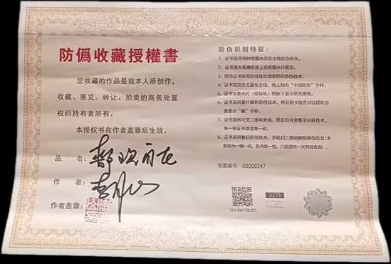 拍品核心档案 藏品:李月山《静观》作者:“大红袍” 艺术家 李月山(扛鼎之作)创作:2027 年尺幅:10.08 平尺工艺:工笔重彩,宝蓝底 + 金书心经 + 观音造像认证:权威认证齐全,传承有序